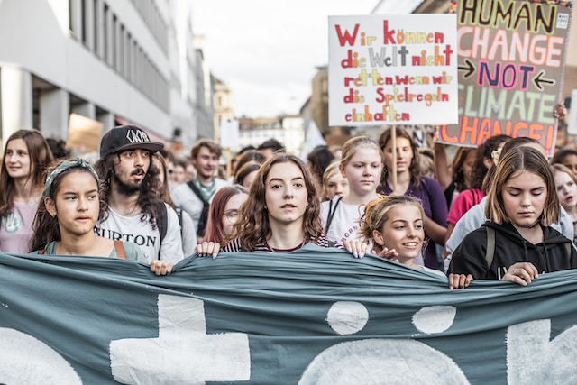 A youth climate march contrasts the attitude of the next generation to the statement by Exxon. Photo by Tom Seger on Unsplash